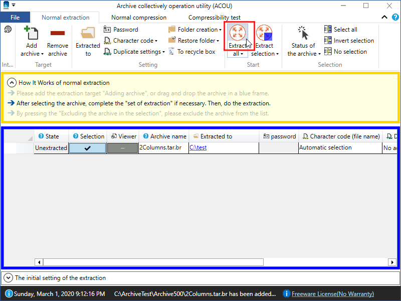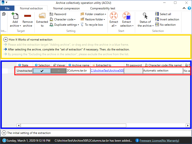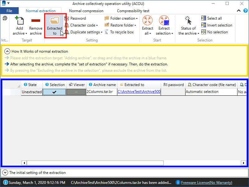 「書庫一括操作ユーティリティ(英語:Archive collectively operation utility)」で、Brotli(.br)形式やZstandard(.zst)形式のファイルを解凍する方法を説明します。