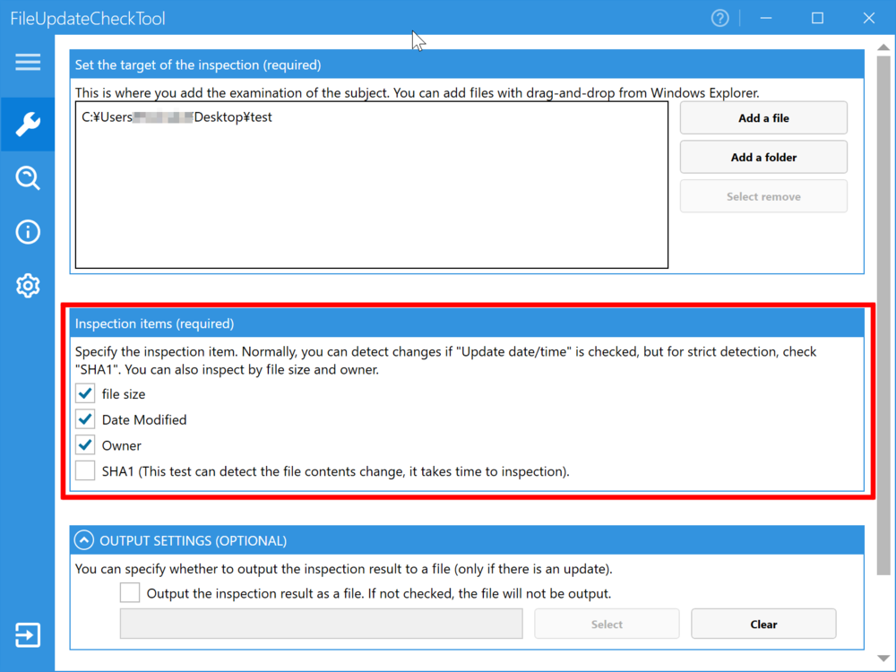 * SHA1ではファイルの内容を比較するため変更を確実に検出できますが、他のチェック項目と比較して、時間がかかります。