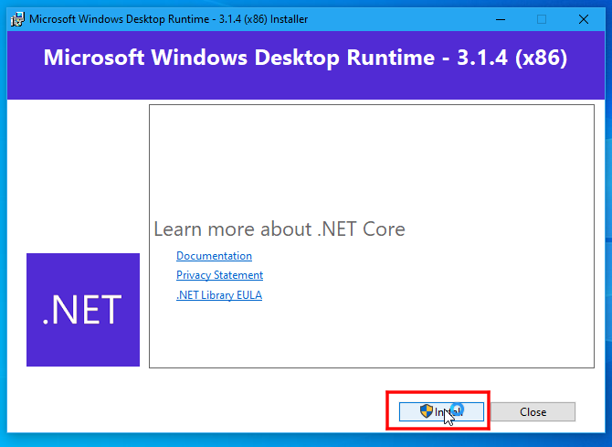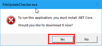 1.「.NET Core 3.1」で作られたプログラムを起動してダイアログで「Yes」を押下する。