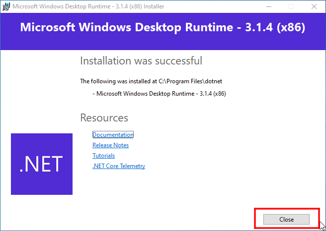 (6)インストールが終了したらインストーラを閉じる
