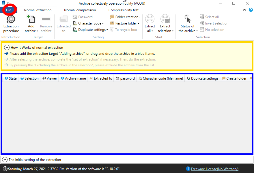 ソフトウェアを起動後、「ファイル」タブを押下してください。